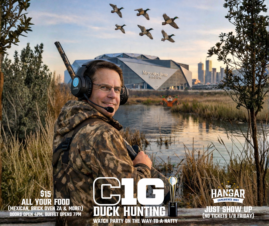 The Hangar 501 Madison Ave, Indianapolis, IN, United StatesCome watch CIG and crew go Duck hunting on national tv! $15 for all your food and then just purchase the drinks you want. It's the Peach Bowl and if... read more